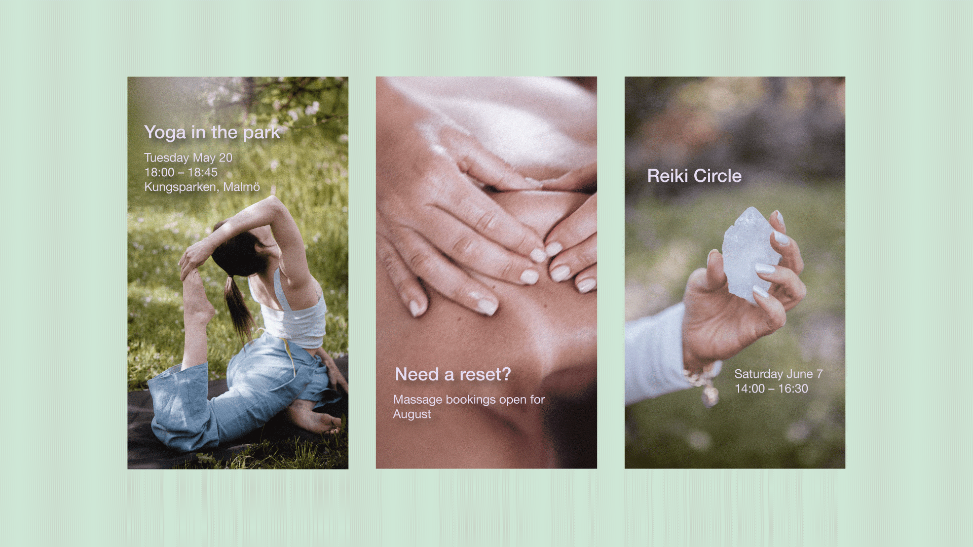 Gotty crafted a visual identity that’s soft but bold, spiritual yet grounded. Dreamy gradients and light-filled imagery capture a sense of flow and energy, creating a visual world that feels as inviting as Stina’s sessions.